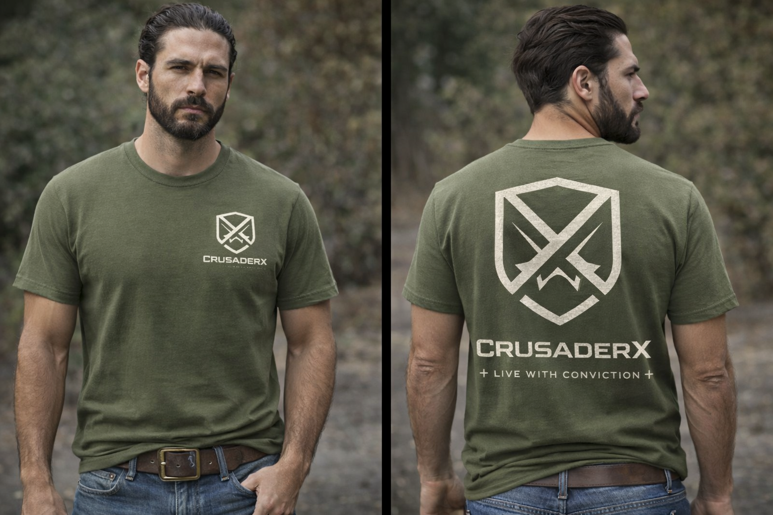 The Conviction Tee is the foundation of CrusaderX. A heavyweight, American-made t-shirt designed for those who value discipline, durability, and moral clarity. Made from 6 oz/yd² American-grown cotton, it delivers a substantial, structured feel that holds its shape and improves with wear.